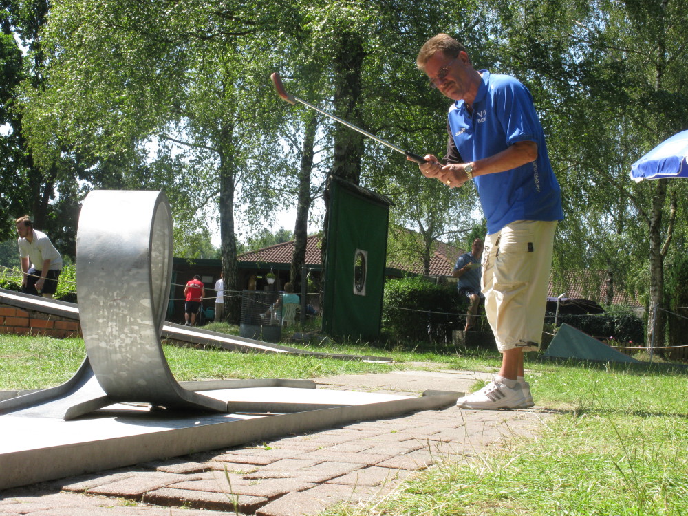 Hans-Wilfried Leuchtenberger (VfM Berlin) Überraschender Ausgang beim Aufstiegsspiel zur 2. Herren-Bundesliga Nord am Wochenende auf der Kombinationsanlage (18 Bahnen Beton, 18 Bahnen Eternit) im schleswigholsteinischen Trappenkamp: Bei brütender Hitze, die den vier beteiligten Teams besonders am Samstag auf Beton hart zusetzte, düpierte das Team vom VfM Berlin die stärker eingeschätzte Konkurrenz und war sowohl auf Beton, als auch auf Eternit beste Mannschaft. Zweiter (und damit ebenfalls aufgestiegen) die Mannschaft vom BGV Bergisch Land. Dem Zweitligafünften MGC Köln blieb nur der undankbare 3. Platz vor "Möve" Cuxhaven. Der Regionalliga-Nordmeister um "Butsche" Christian Somnitz fand nie zu seiner Stärke und erfüllte vor allem am 2. Tag auf den kleinen Eternitbahnen die eigenen Ansprüche nicht. Endergebnis: 1. VfM Berlin 1336, 2. BGV Bergisch Land 1340, 3. MGC Köln 1357, 4. "Möve" Cuxhaven 1360 27.07.2008 |