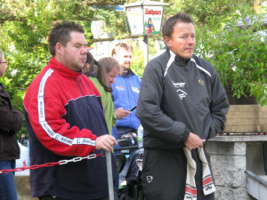 Walter Erlbruch (linkes Foto rechts), der natürlich genau weiß, welcher Coup den Hardis mit der Verpflichtung des aus Arheilgen gekommenen Alexander Geist gelungen ist. Geist war bereits zum Saisonauftakt in Kiel bester Hardenberger und pulverisierte nun in Hilzingen mit sagenhaften 98 Schlägen in vier Durchgängen (2. Runde 22) den Platzrekord. 148 Schläge in Mannschaftsdurchgang 2 bedeuteten für Hardenberg ebenfalls Platzrekord. Zweiter in Hilzingen wurde Arheilgen vor Niendorf. Erneut nur Vierter wurde Titelverteidiger Dormagen-Brechten, der sich in der laufenden Saison sportlich neu orientieren muß. Der Titelzug scheint abgefahren. Zwischen Platz 2 und Platz 5 lagen gerade mal vier Schläge, sehr zum Leidwesen der jungen Mainzer Truppe. Vorjahres-Dritter Bochumer MC leistete sich nach dem 5. Platz in Kiel nun sogar eine Nullnummer. Statt erneutem DM-Treppchenplatz steht der Klassenerhalt auf dem Spiel.