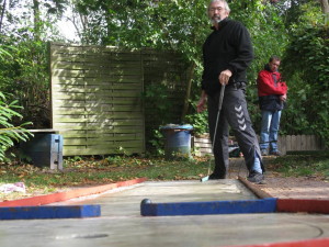 Kuller Dir einen an den Bodenwellen. Patrick Menzel (Salzgitter, 95) macht´s mit der Glaskugel, was bei der naßkalten Witterung ein gewisses Risiko darstellt. Hier ist es gut gegangen. |